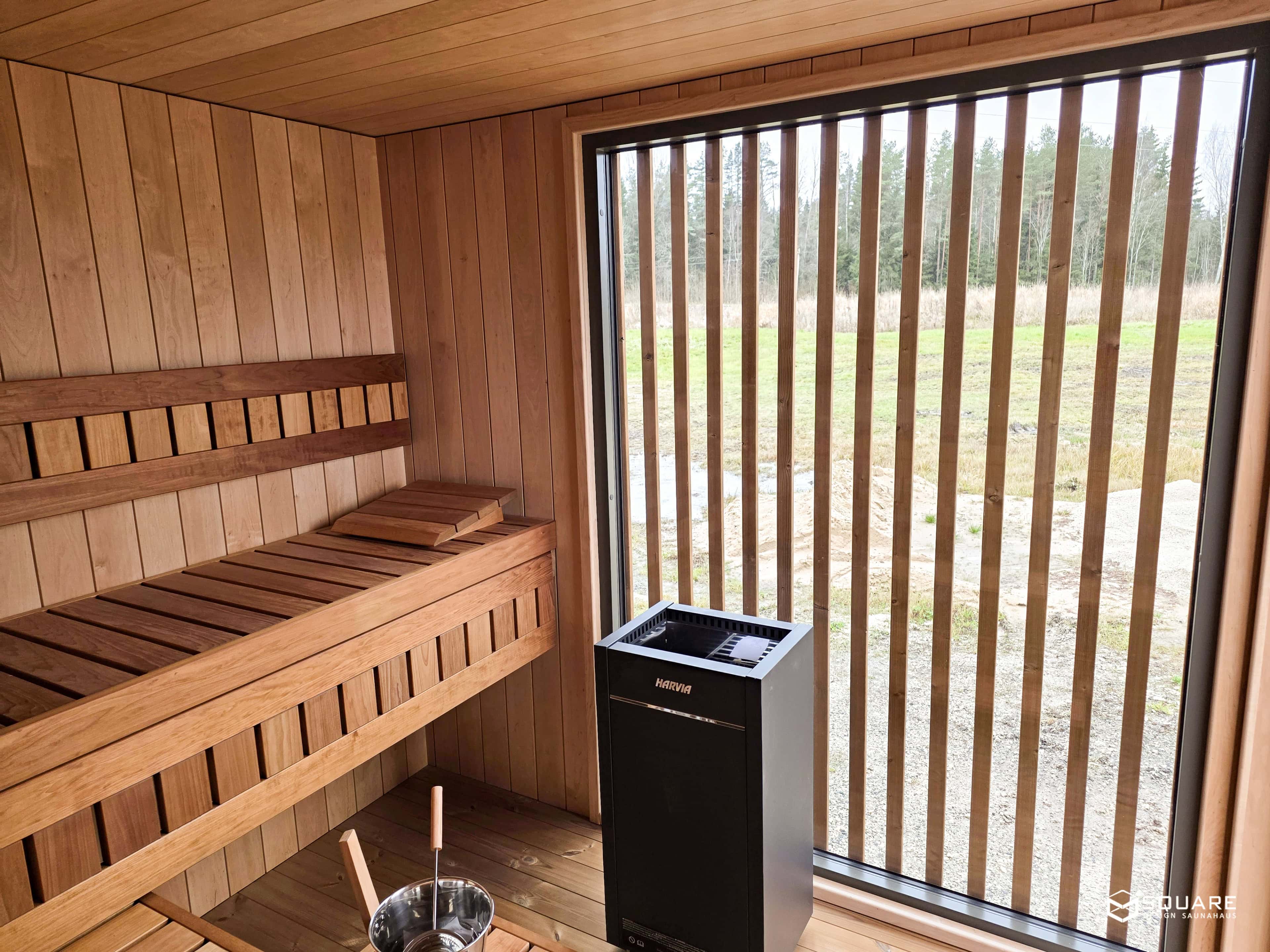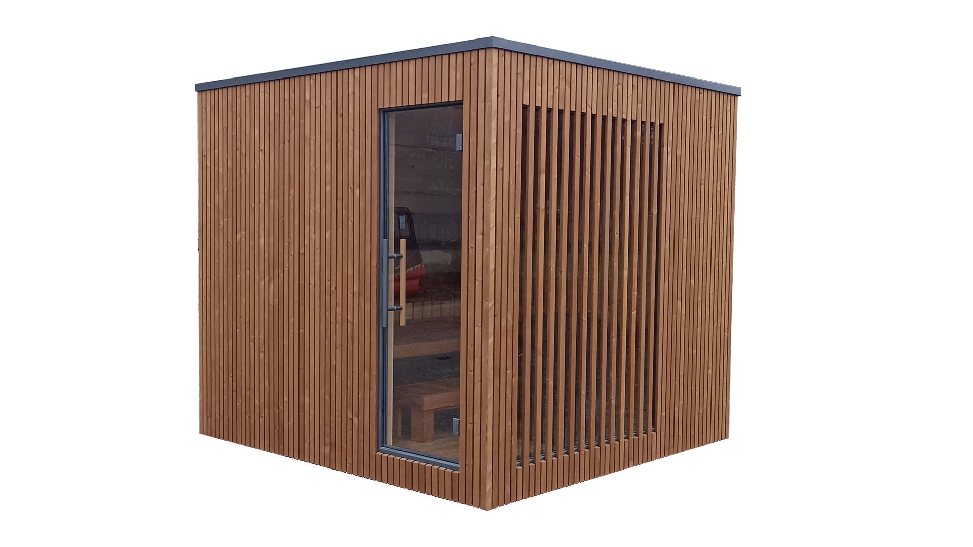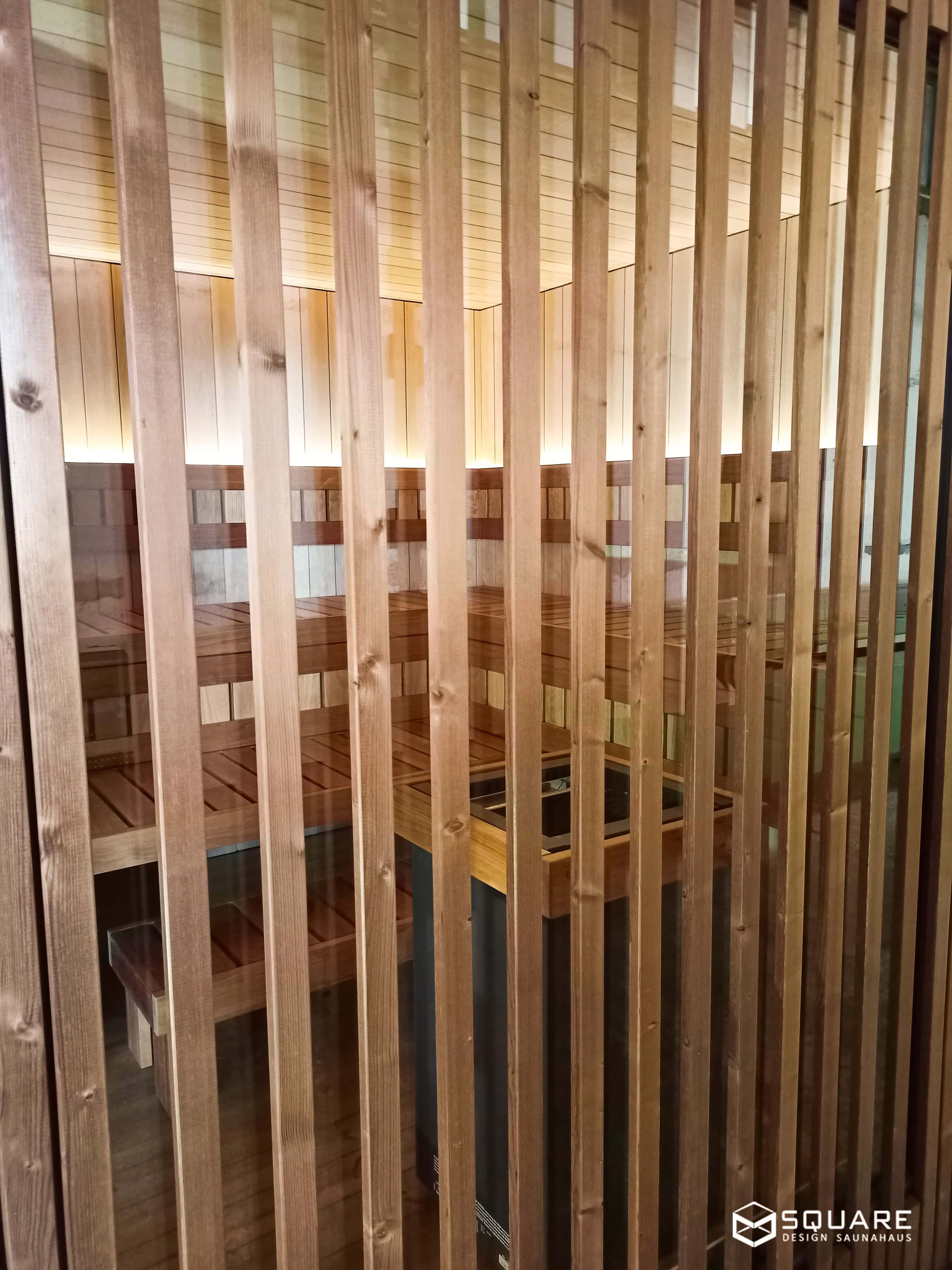 Stabiler und exklusiver Sauna-Cubus mit viel Platz für Platz bis zu 7 Personen.
